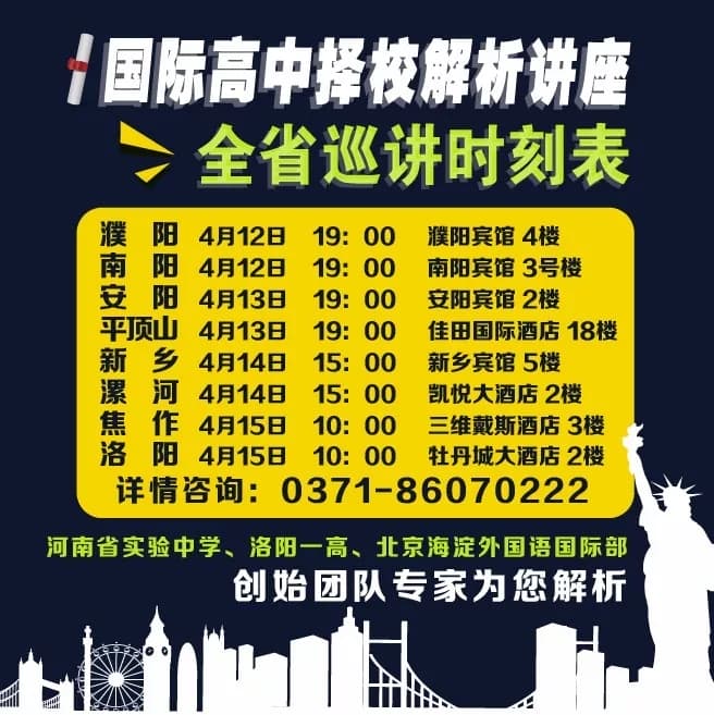 4月12—15日, 濮阳、南阳、安阳、平顶山、新乡、漯河、焦作、洛阳巡回讲座为您剖析这些问题,理清升学路线.....