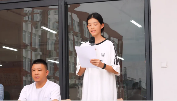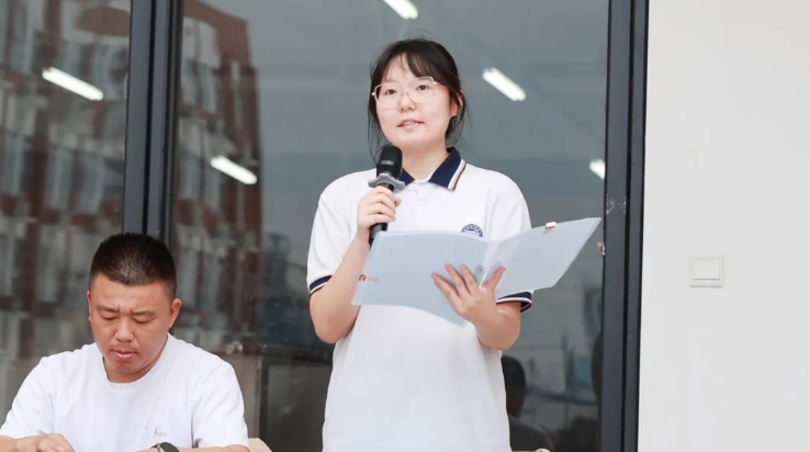 高一年级卢启明同学作为新生代表发言。她分享了军训期间的收获,坦言十天的烈日与汗水不仅强健了体魄,更让自己读懂“坚持”与“团结”的意义。面对即将开启的高中生活,她代表全体高一新生承诺:将秉承“唯德唯勤,乐学向上”学风攻克学习难题,在新起点上踏实奋进,不负青春时光。