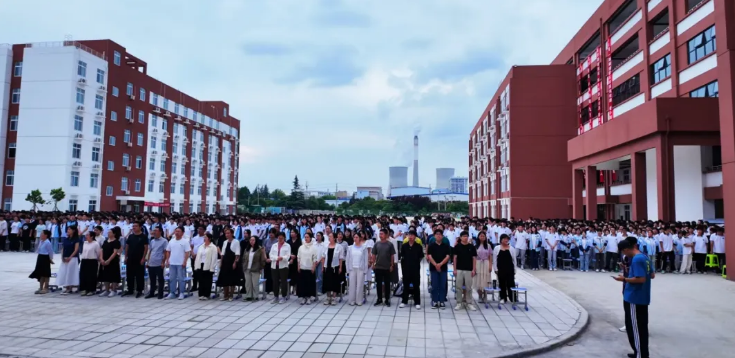 开学典礼在庄严的国歌声中拉开帷幕。全体师生肃立,高唱国歌,爱国情怀与开学的憧憬在每个人心中激荡。