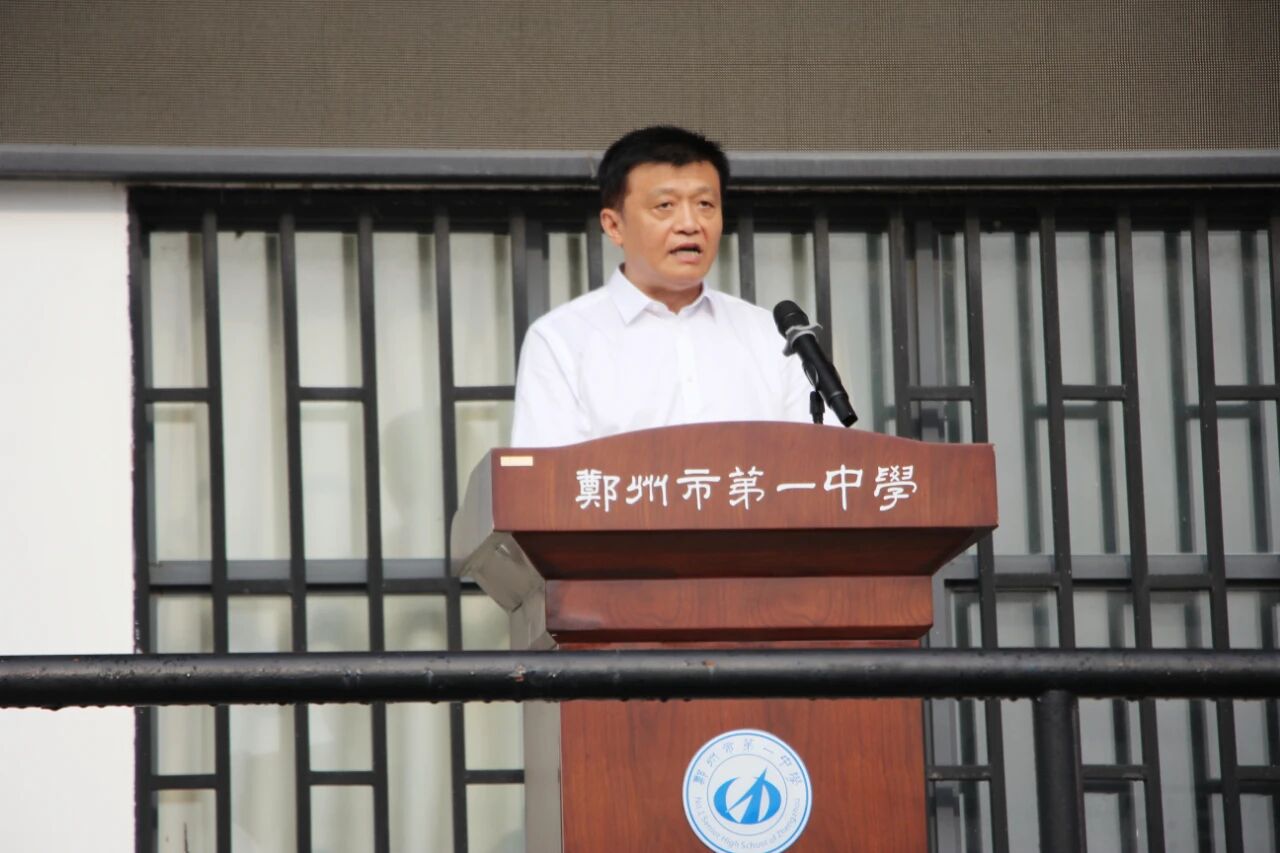 结营仪式尾声,郑州一中党委书记闫培新作军训闭营总结讲话。闫书记首先对全体学子的军训成果给予高度赞扬,肯定了大家在军训中磨砺出的意志品质与集体荣誉感。同时,他勉励全体新生:要将军训中养成的纪律意识、奋斗精神融入高中学习生活,以今日之磨砺为基,以明日之拼搏为笔,在郑州一中教育集团的沃土上,书写属于自己的辉煌明天。