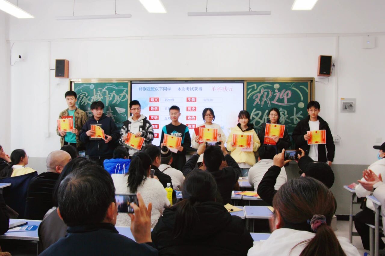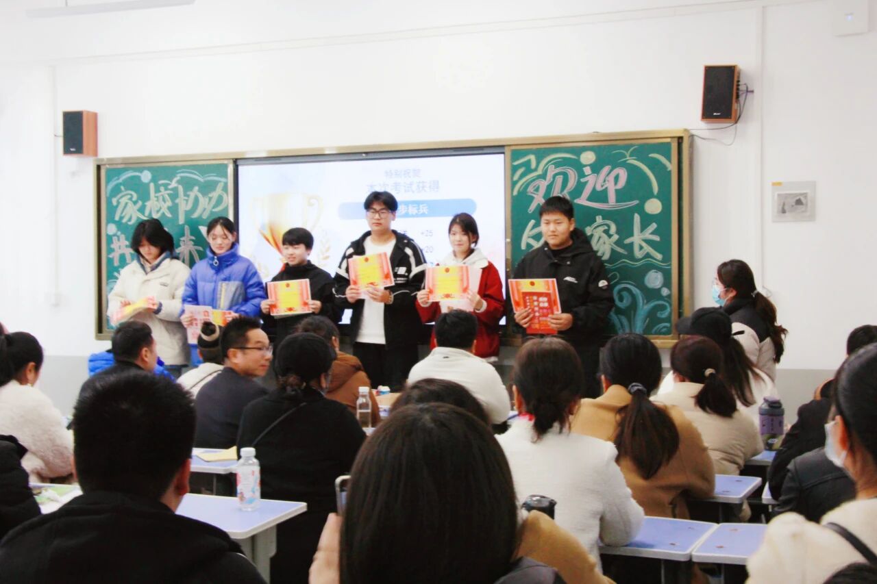 荣誉暖人心,同心育新苗。班主任为获奖学生发奖状奖品,既为勤奋拼搏、斩获佳绩的学子们送上肯定,也向全力支持学校工作、陪伴孩子成长的家长们致以敬意。这份荣誉凝聚着家校携手同行的育人初心,更激励着全体同学以榜样为镜,在高中征程中奋勇争先。
