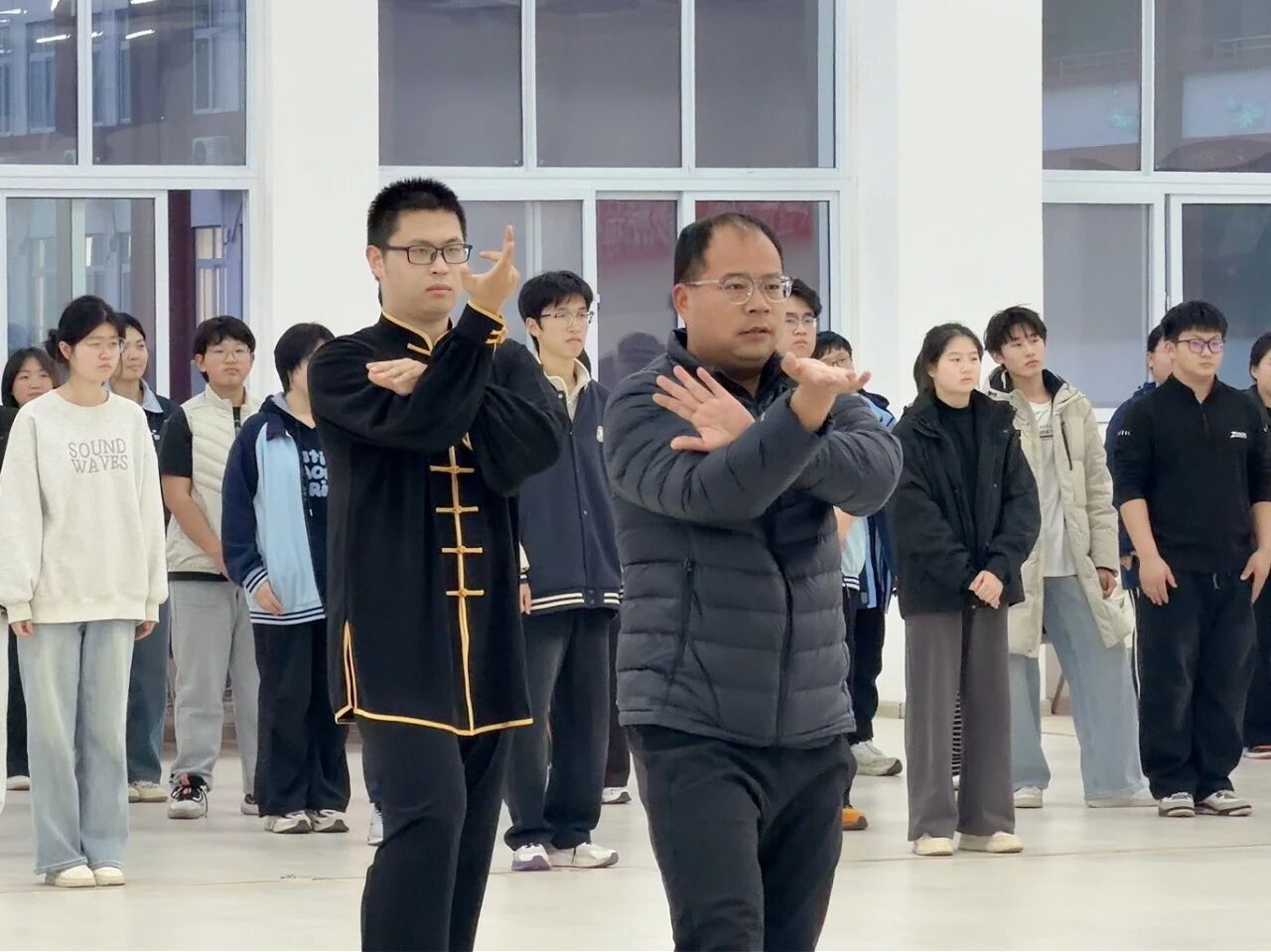 表演结束后,宫世浩校长为本次汇演致辞。他肯定了同学们在培训期间的刻苦付出,同时对本次活动的成功举办以及同学们在短时内取得的进步表示热烈祝贺。他指出,练习太极拳不仅能强身健体,更能帮助同学们在快节奏的学习生活中沉心静气,陶冶性情,磨练意志。希望大家将太极拳中“刚柔相济、持之以恒”的精神融入日常学习与生活,不断精进自我,传承中华优秀传统文化。