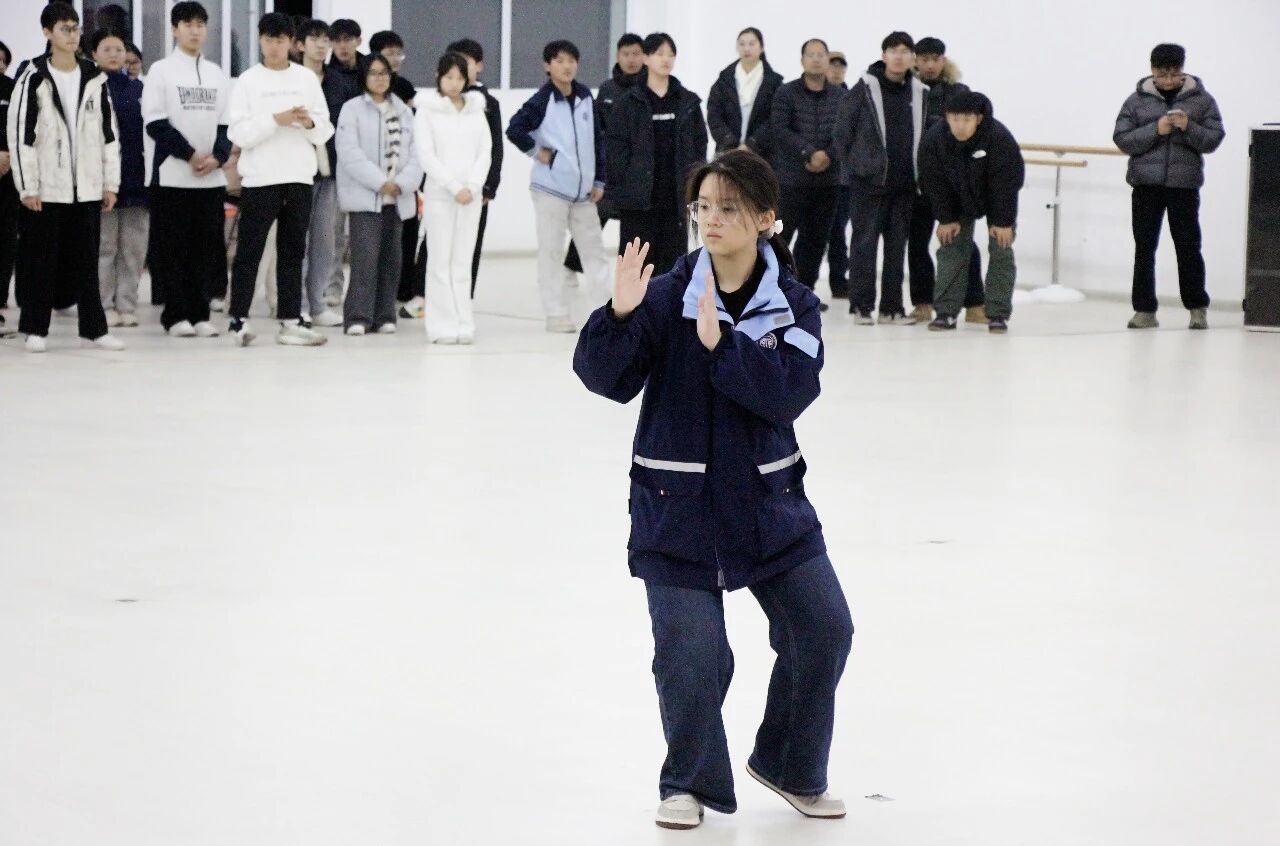 汇演活动在骨干学员集体表演中拉开帷幕。学员们动作整齐划一,身姿舒展沉稳,举手投足间尽显太极神韵,赢得了在场师生的阵阵掌声。