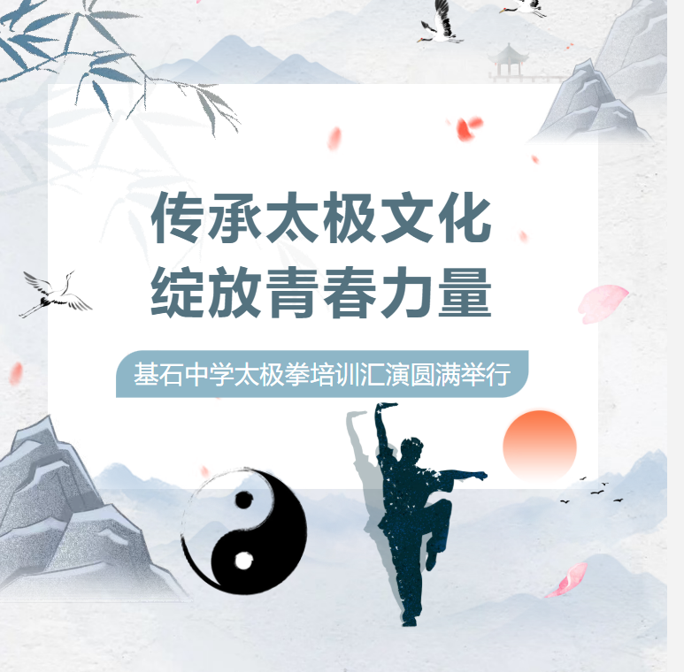 为弘扬中华优秀传统文化,丰富校园文体生活,12月9日,郑州市基石中学太极拳骨干培训汇报演出在报告厅顺利举行。校长庞凯、执行校长宫世浩及陈式太极拳第十二代传承人王海平老师出席活动,共同见证这场力与美、刚与柔完美交融的体育文化盛宴。