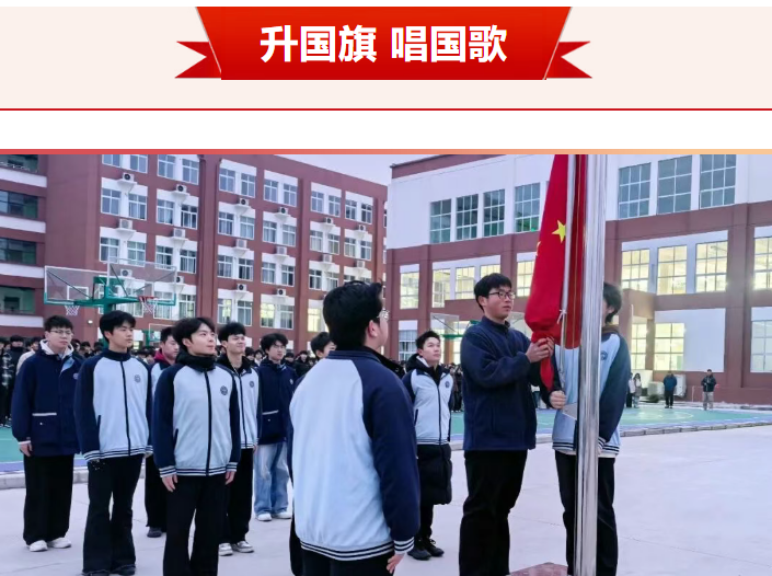 伴随着激昂雄壮的《义勇军进行曲》,鲜艳的五星红旗在全体师生的注目下冉冉升起。师生们昂首肃立行注目礼,心中涌动着对祖国的崇敬与热爱。