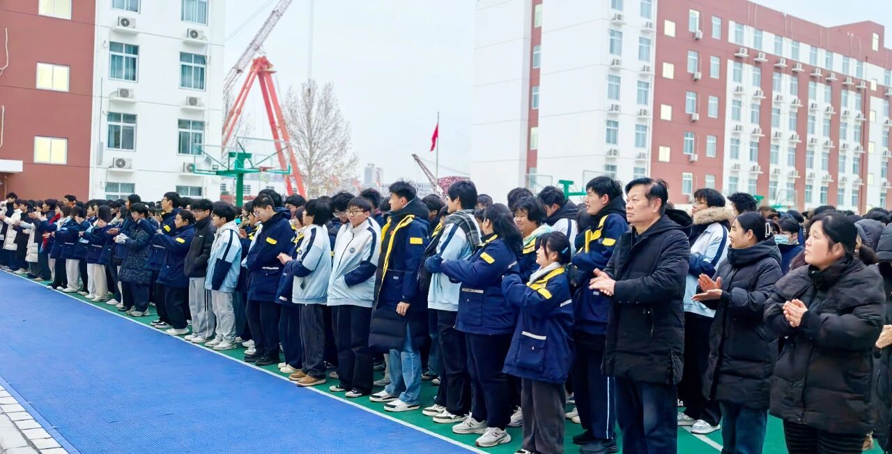 宫世浩校长在讲话中,向辛勤耕耘的老师们致以敬意,为刻苦奋进的同学们点赞。他希望全体师生凝心聚力,共同营造积极向上的学习氛围,期盼2026年高三学子再创佳绩,金榜题名,全校同学不断进步,学业精进,号召大家以实干续写华章,共同创造更加辉煌的明天。宫校长的讲话赢得了全场热烈的掌声,激发了全体师生对未来的无限憧憬与奋斗热情。