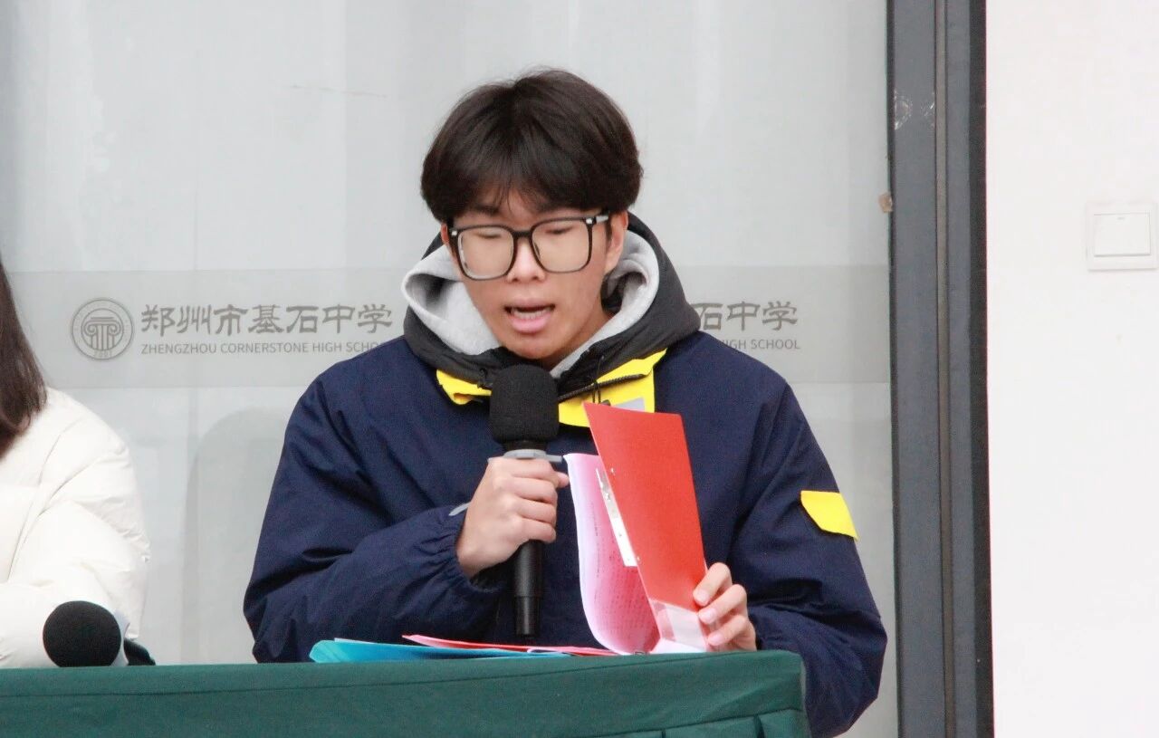 少年负壮志,奋进正当时。高三学生代表刘铠浩同学以《以梦为马,不负韶华》为题发言,结合成长感悟,寄语高一同学珍惜起点、养成习惯,叮嘱高二同学坚守初心、厚积薄发,并代表全体高三学子立下冲刺誓言:以笔为剑、全力以赴,在六月考场展现基石学子的自信与锋芒。