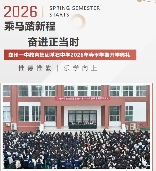 新征程催人奋进,新起点使命在肩。全体基石师生将以龙马精神奋楫争先,用汗水与拼搏书写学校发展新篇章,以优异成绩迎接更加辉煌的明天!