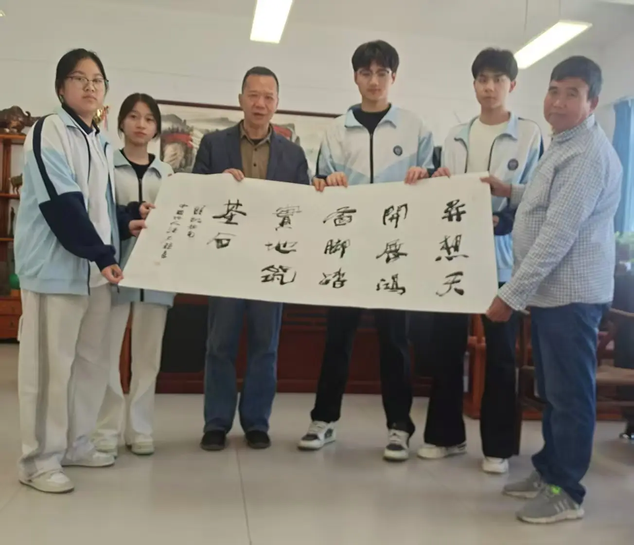 此次汪太银先生公益挥毫,不仅为我校捐赠珍贵墨宝、丰富校园文化内涵,更以文化为纽带,激励全体师生传承中华优秀传统文化,践行校训精神,在成长路上行稳致远。