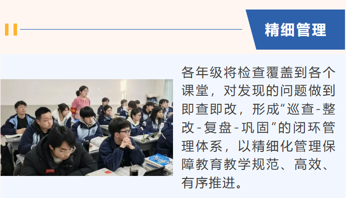 学校以精细化高标准严格管理护航学子成长,全力打造专注高效、规范有序的优质学习环境,让孩子潜心向学,让家长安心无忧。