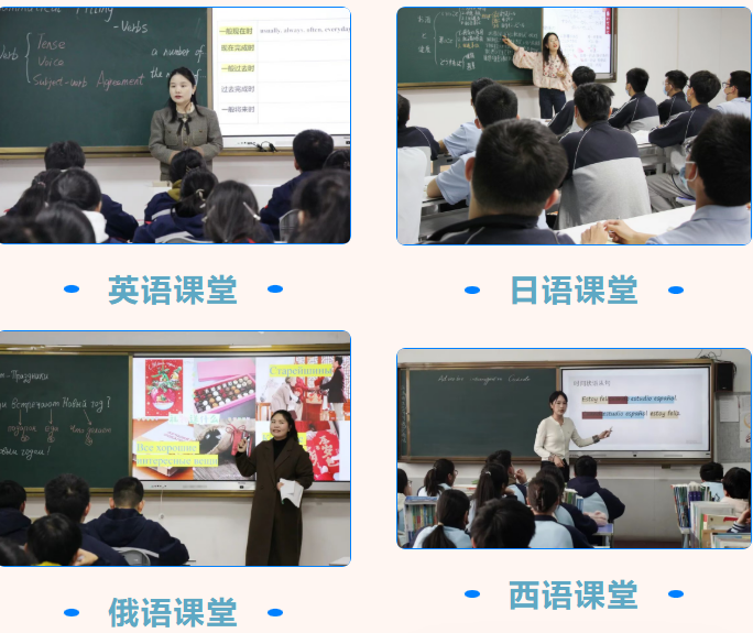 根据教育部相关规定,高考外语科目包括英语、俄语、日语、法语、德语、西班牙语6个语种,考生可任选其一参加考试,分值均为150分。我校外语科目开设有英语、西语、俄语、日语。小语种高考考生少、题型相对简单,对于英语较为薄弱的学生学习小语种,外语高考成绩将得到大幅度提升。据统计,我校历届小语种考生高考外语较中考平均提升55分以上。毕业生陈*玮中考英语63分,高考俄语137分;冯*轩中招英语73分,高考日语133分,以总分610分的优异成绩升入理想大学,真正帮助学生实现了从“短板”到“优势”的逆袭。