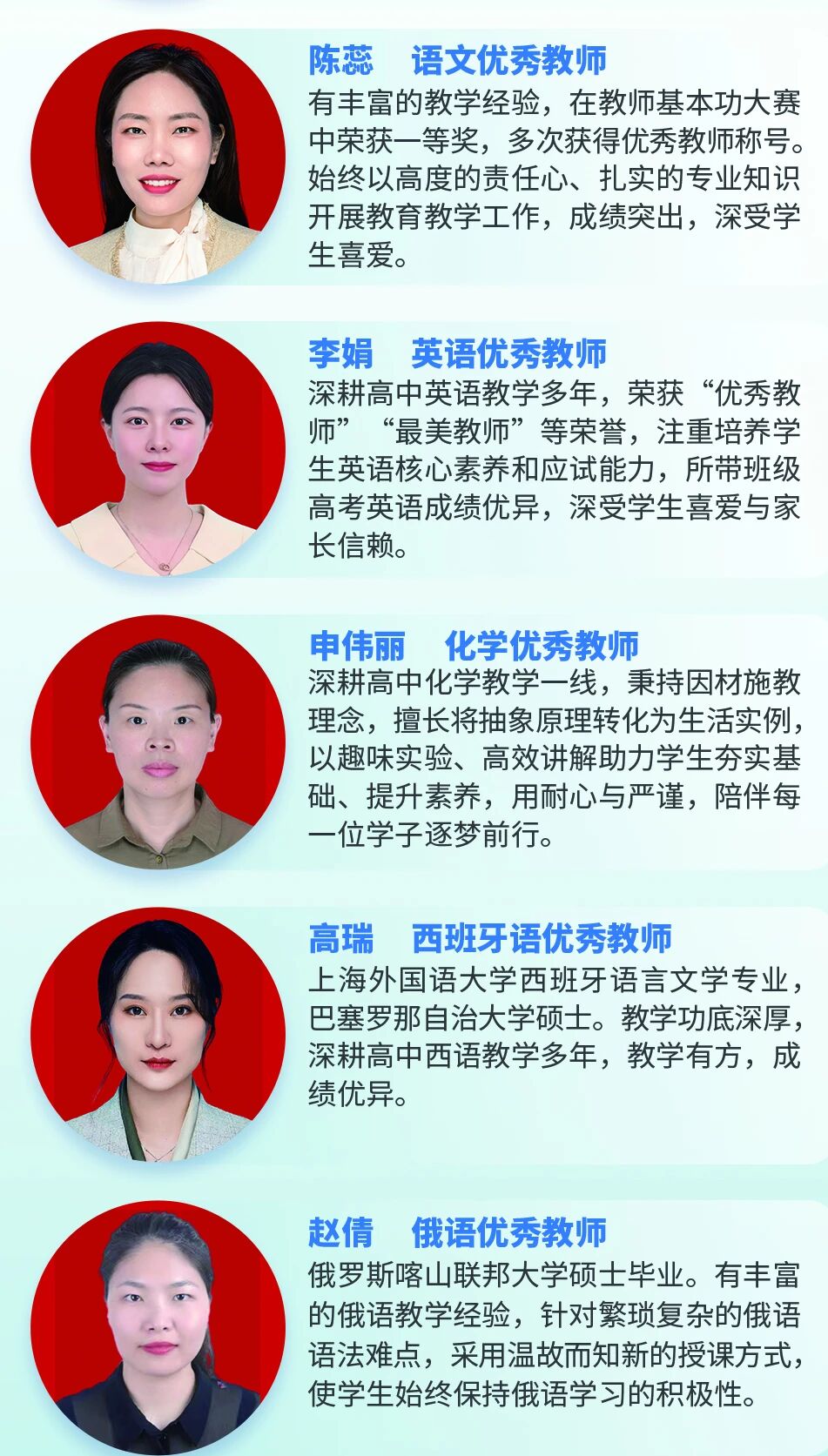 中学高级教师,深耕高中教育教学领域多年,深谙教育规律,拥有丰富的管理经验。曾荣获省市级优秀教师、优秀班主任、师德先进个人、德育创新先进个人等多项荣誉称号。注重学生个性发展与终身成长,致力于培养兼具社会责任感、学习能力、创新精神和实践能力的综合型人才。